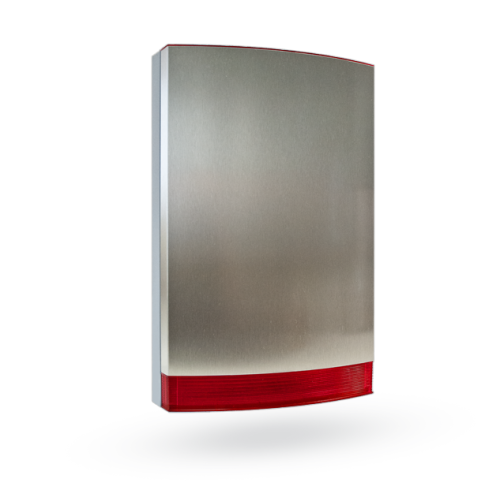 Stainless cover with red flasher for outdoor sirens of Jablotron 100 alarm system